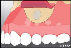 Un biomatériau et une membrane destinée à la régénération osseuse guidée peuvent être mis en place dans la cavité ainsi dégagée.